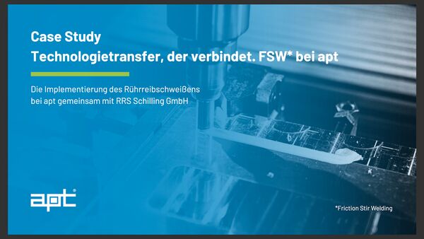 Die apt Gruppe hat gemeinsam mit der RRS Schilling GmbH erfolgreich das Rührreibschweißen (FSW) für die Fertigung von Batteriegehäusen eingeführt. Durch die Partnerschaft und gezielten Know-how-Transfer konnte apt die anspruchsvollen Anforderungen der Landmaschinenbranche erfüllen und die eigene Fertigungskompetenz nachhaltig stärken. Das Projekt steht beispielhaft für zukunftsweisende Technologiekooperationen und eröffnet Kunden neue Möglichkeiten im Leichtbau.